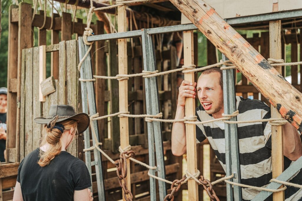 Endlich kamen die Teilnehmer auf dem Platz und die Story ging weiter. Bei einem chaotischen Bankraub, bei dem der Tresor gesprengt wurde und dem schnell flüchtigen Dieb, wurde auch noch der Falsche verhaftet… Strafarbeiten im Steinbruch gabs trotzdem.