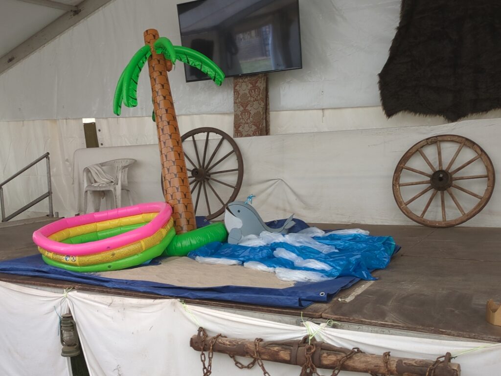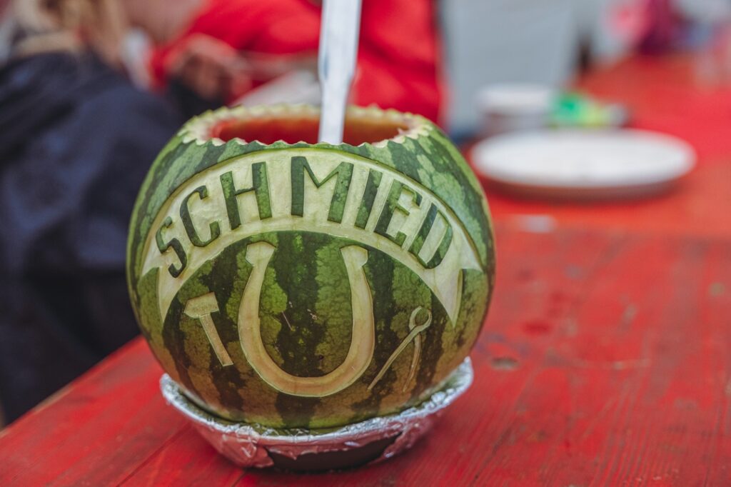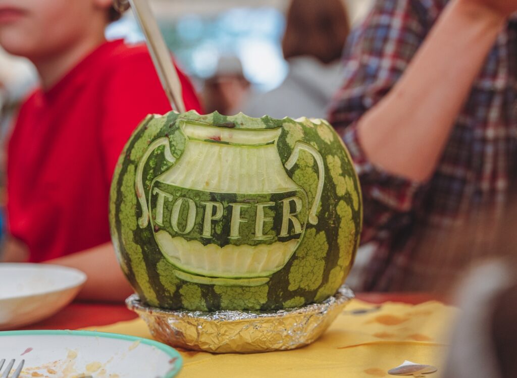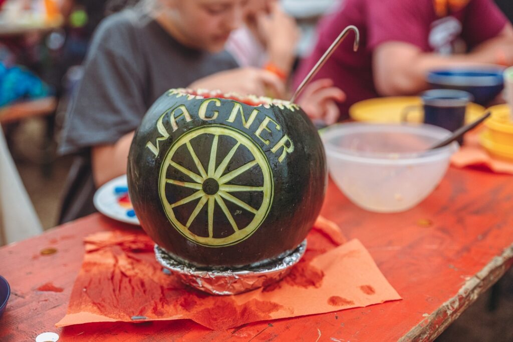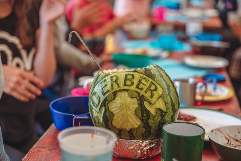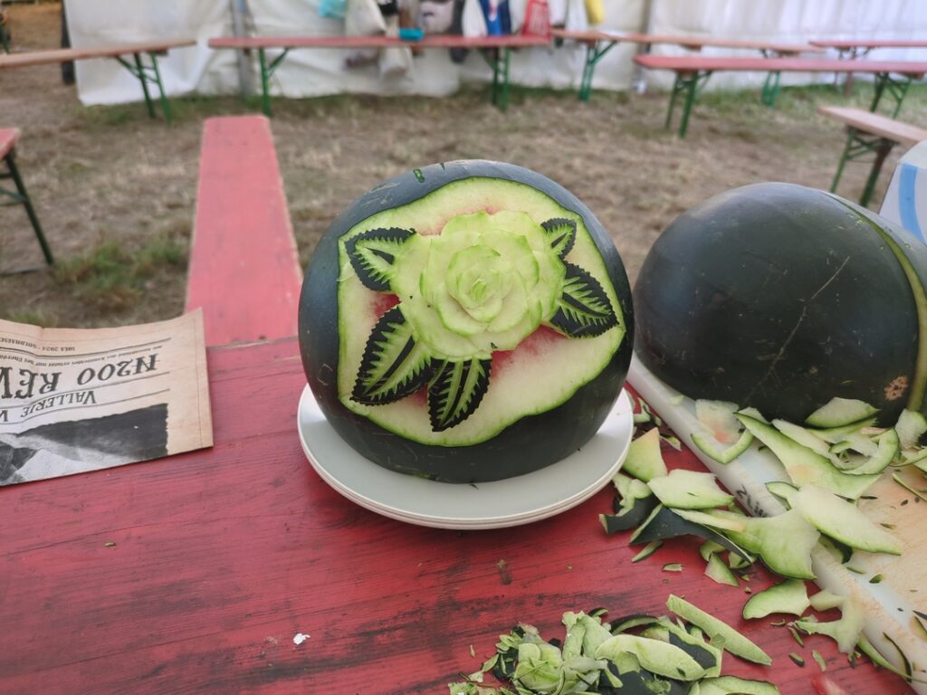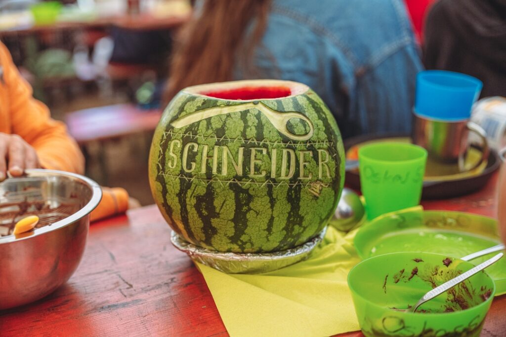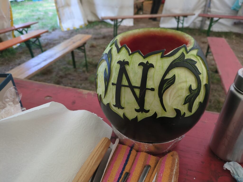 Es gab auch wieder einen Fest- und Casinoabend, bei dem ich sogar mal wieder Zeit hatte, mich um ein bisschen Deko zu kümmern. Endlich mal wieder an Essen rumschnitzen. Jede Gruppe hat ihr Wappen bekommen und damit einen schönen Behälter für die Melonen-Bowle.