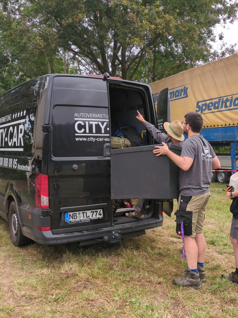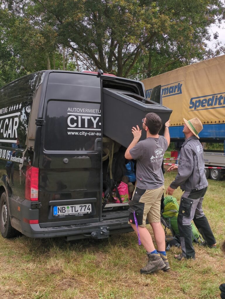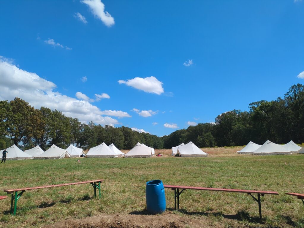 Zum Glück haben wir auch Leihzelte oder man schläft unter/in der (Container)Brücke