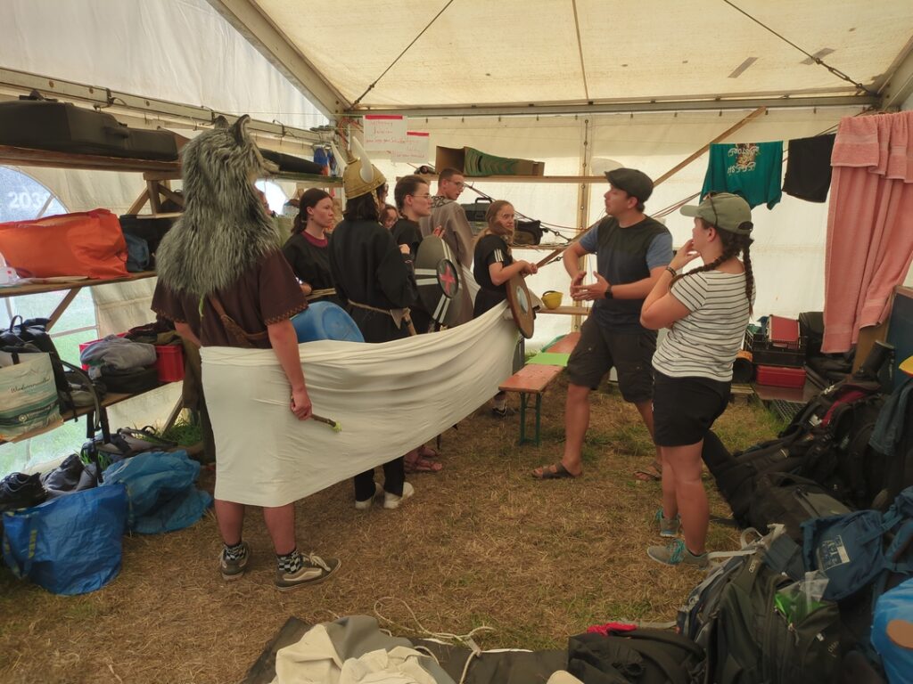 Ein Mangel an vollen Bärten wurde durch die weibliche Belegschaft mit möglichst langen Haaren ersetzt. Haare einfach von hinten nach vorn unter der Nase zusammenbinden und schon ist ein wundervoller Wikingerbart da.
